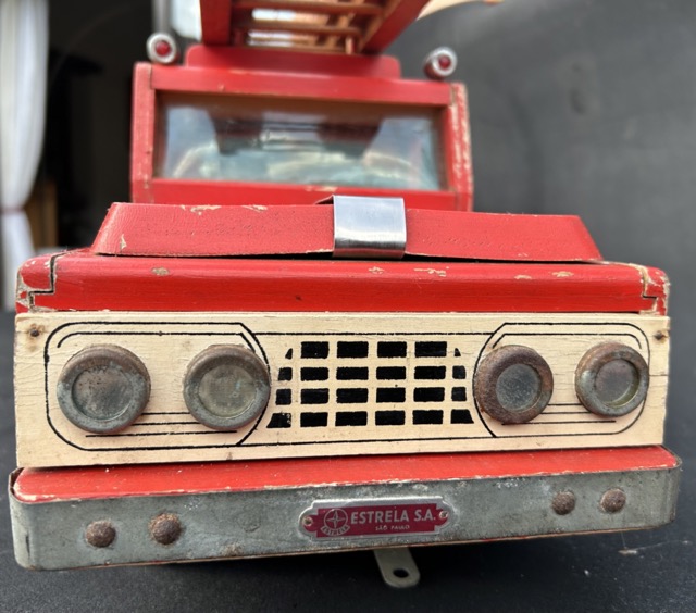 L’article sur la restauration du très beau camion en bois Hedo que vous présentez me rappelle mon camion d’enfance, un cadeau rapporté par mon oncle de son séjour au Portugal. Il a accompagné beaucoup de mes jeux, sur le parquet de l’appartement et dehors dans les jardins publics. Aujourd’hui, il a toujours sa grande échelle de 150 cm de haut mais garde les traces de son (mon ?) turbulent passé. Il porte une plaque métallique marquée Estrala São Paulo. Mais je n’en sais pas plus sur cette marque. Pourriez-vous m’aider ?