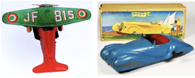 Petit avion acrobate (réf. 815) siglé JF et Jouef, et Delahaye Type 165 Figoni & Falaschi 1939.