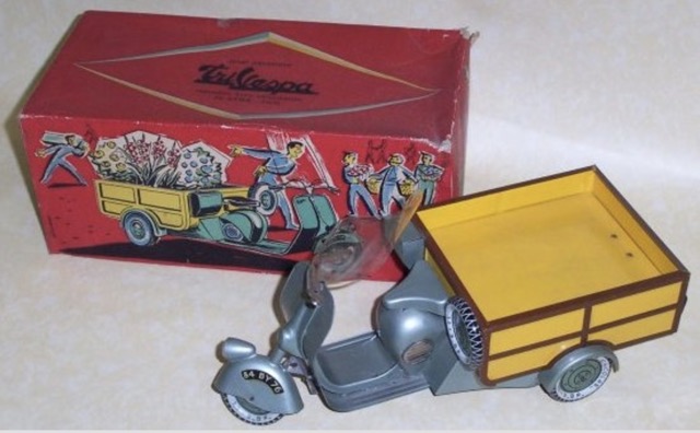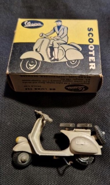 Véritable phénomène social, la Vespa a également été reproduite à plus petite échelle par les fabricants de jouets. Citons la Moko Pop-Pop Matchbox de la fin des années 1940, la Vespa Scottoy-Mercury au 1/30e de 1960, ou encore la belle miniature du danois Tekno.