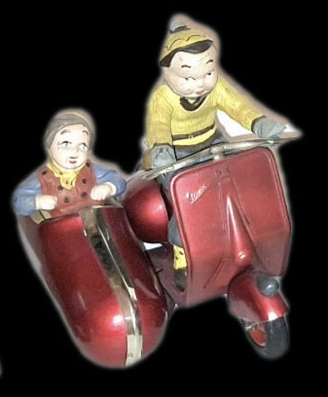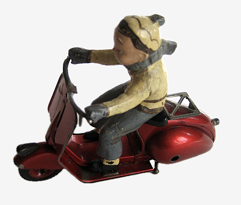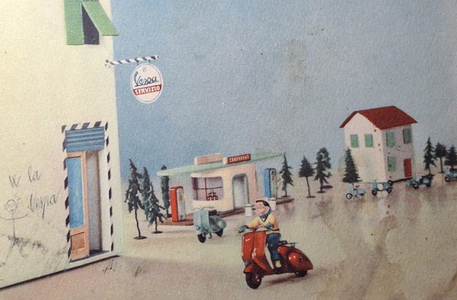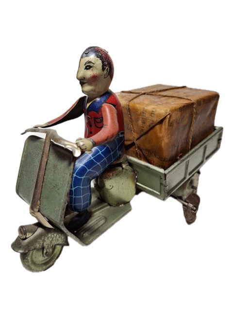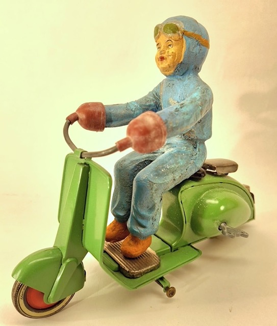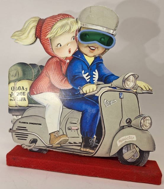La Vespa ne manqua pas de stimuler la créativité des fabricants de jouets dans de multiples pays. La légendaire Dolce Vita transalpine se popularisa en Europe du Nord et, pour les plus jeunes, elle fut synonyme de liberté, de vacances et d’indépendance. En témoignent les illustrations des boîtes qui donnent à voir des routes de campagne ou de bord de mer.