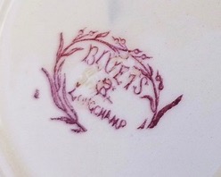 Les pièces des dinettes portent, comme celles de taille normale, l’estampille de la faïencerie de Longchamp créée dans ce village de Bourgogne. Cette estampille correspond à la période 1945-1970.