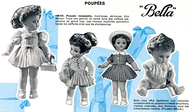 Depuis 1946, l’entreprise Bella fabriquait des poupées, des poupons et des panoplies d’habillage d’une grande diversité. Dès ses débuts, la qualité de la production fut le credo de la célèbre marque française. La recherche technique et la constante innovation alliées à l’inspiration artistique ont longtemps fait de Bella la poupée la plus prisée des petites filles européennes. Pourtant en 1984, après de nombreux problèmes liés au contexte économique, la firme cessa définitivement ses activités.