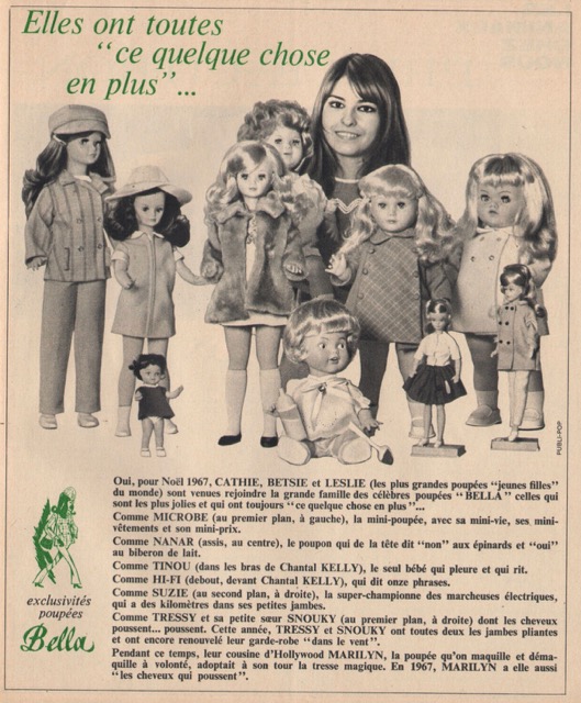 En 1967, Bella commercialise Microbe, une poupée miniature en vinyle, aux cheveux implantés, de 16 cm de hauteur. Elle est dotée d’une abondante garde-robe.