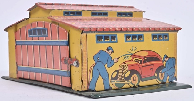 30 € Mémo, garage en tôle lithographiée, bon état, petites usures, 23 x 17 x 11 cm.