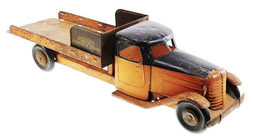 Structo a produit de nombreux véhicules utilitaires suggérant aux jeunes garçons leurs futurs métiers, jusqu’à ce que l’effort de guerre suspende le rêve de la “voiture jouet éducative”.